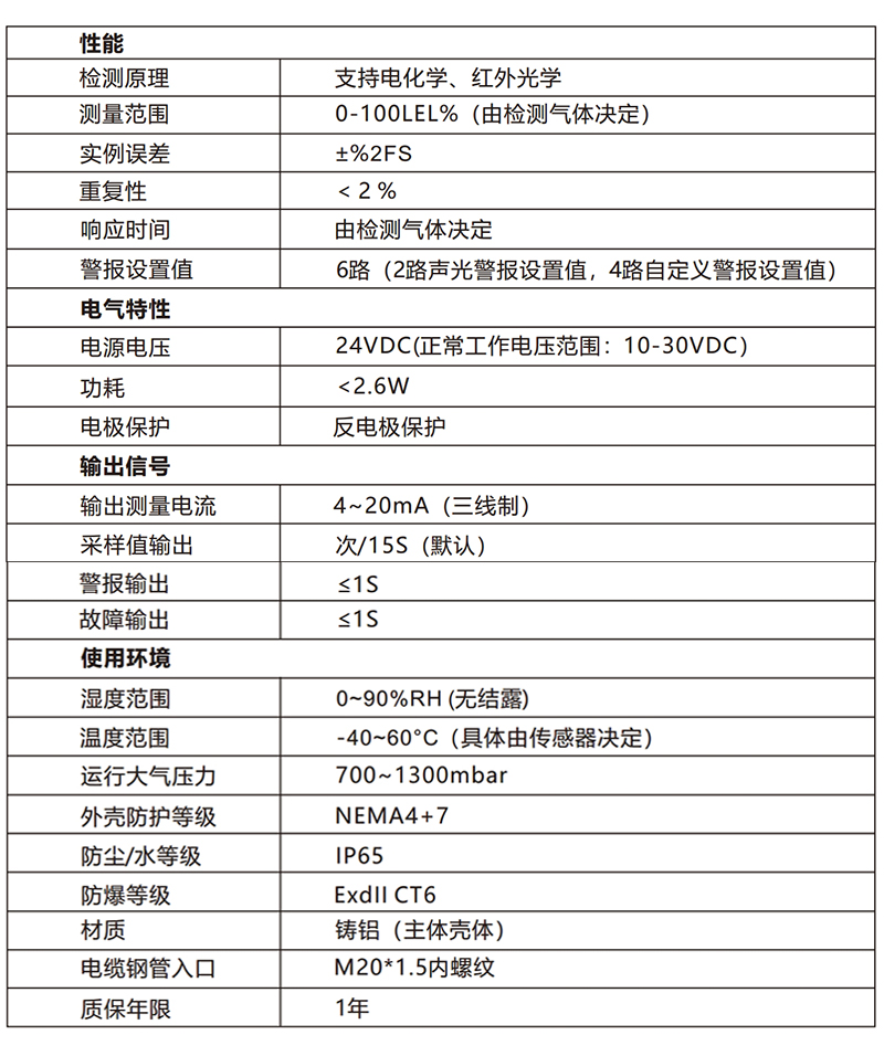 滿足ExdII CT6等級防爆要求,滿足IP65等級防水要求,提供防爆證書;滿足外殼防護NEMA4+7;堅固合金防撞。